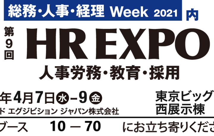 リードエグジビションジャパン主催「第9回 HR EXPO」にブース出展いたします 【4/7~4/9 東京ビッグサイト 西展示棟にて】